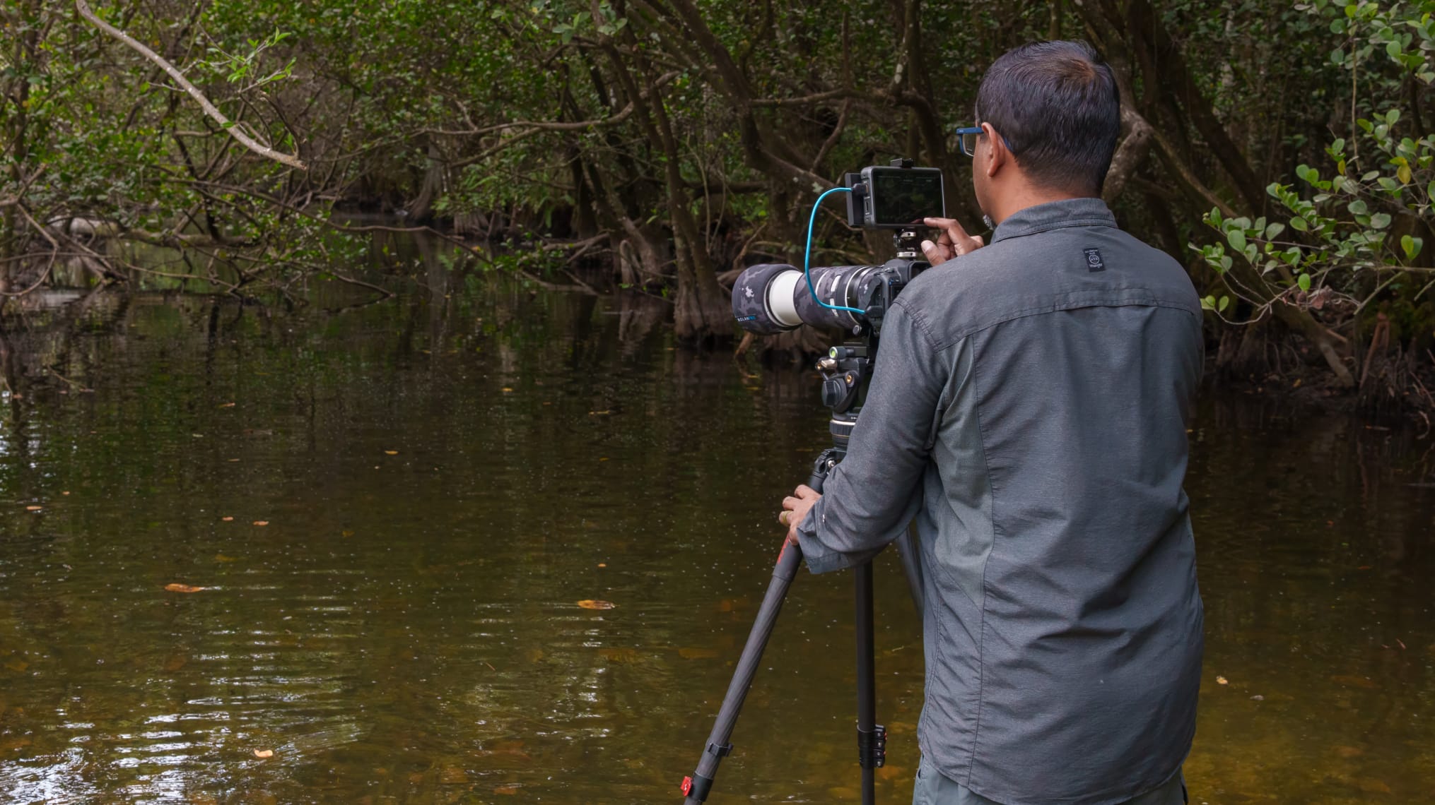As a solo filmmaker, Satesh values a simple and efficient workflow. He uses a Canon R5 Mark II hybrid camera, allowing him to smoothly transition between images and video footage. He pairs the camera with an Atomos Ninja monitor-recorder to record 8K ProRes RAW content. “Recording in high-res 8K is a game-changer for capturing wildlife shots,” he shares.