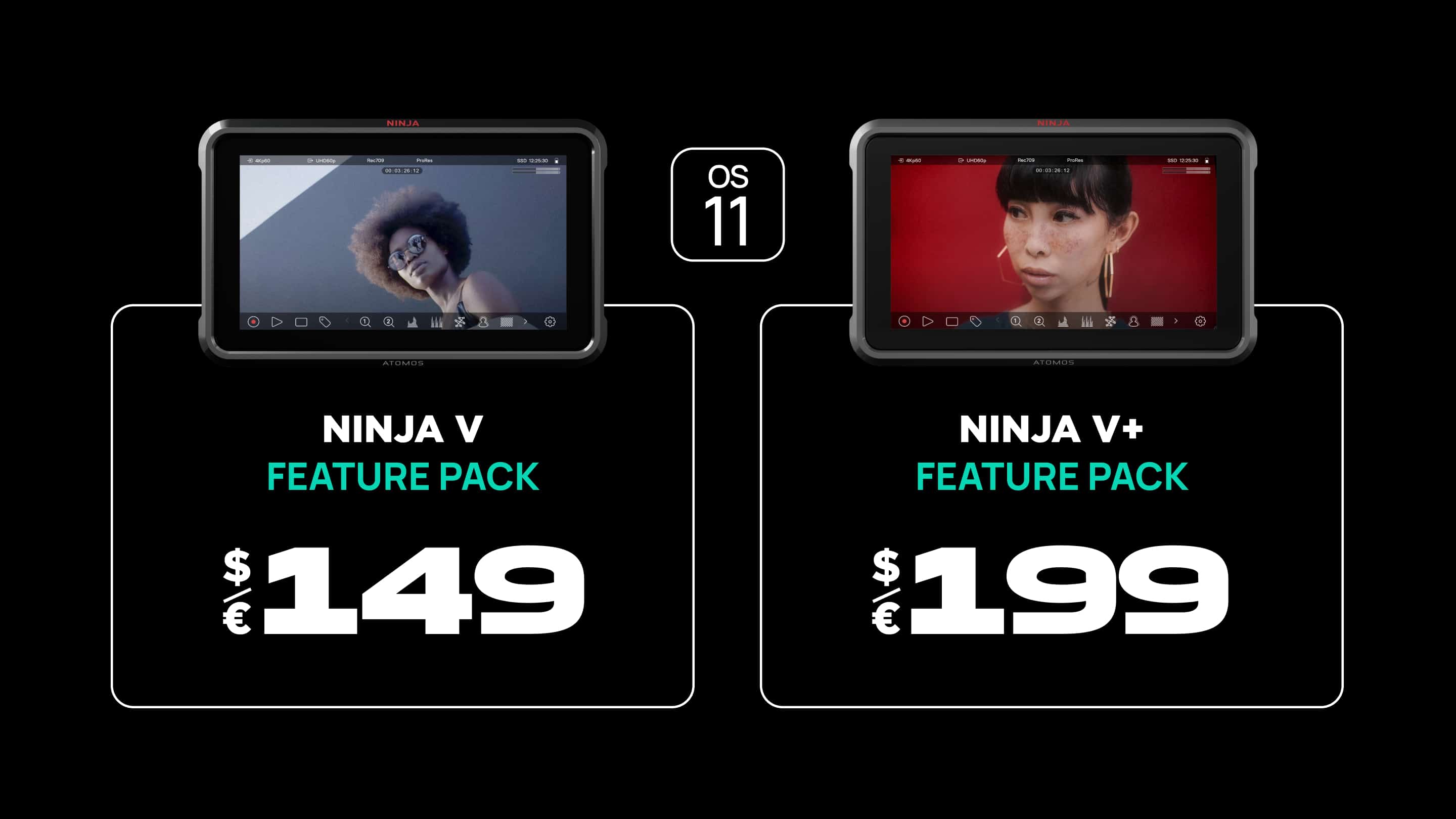 First, there is a free of charge base upgrade which brings the refreshed AtomOS 11 user interface, but no new features. On top of this there are two Feature Packs, one for Ninja V and one for Ninja V+.